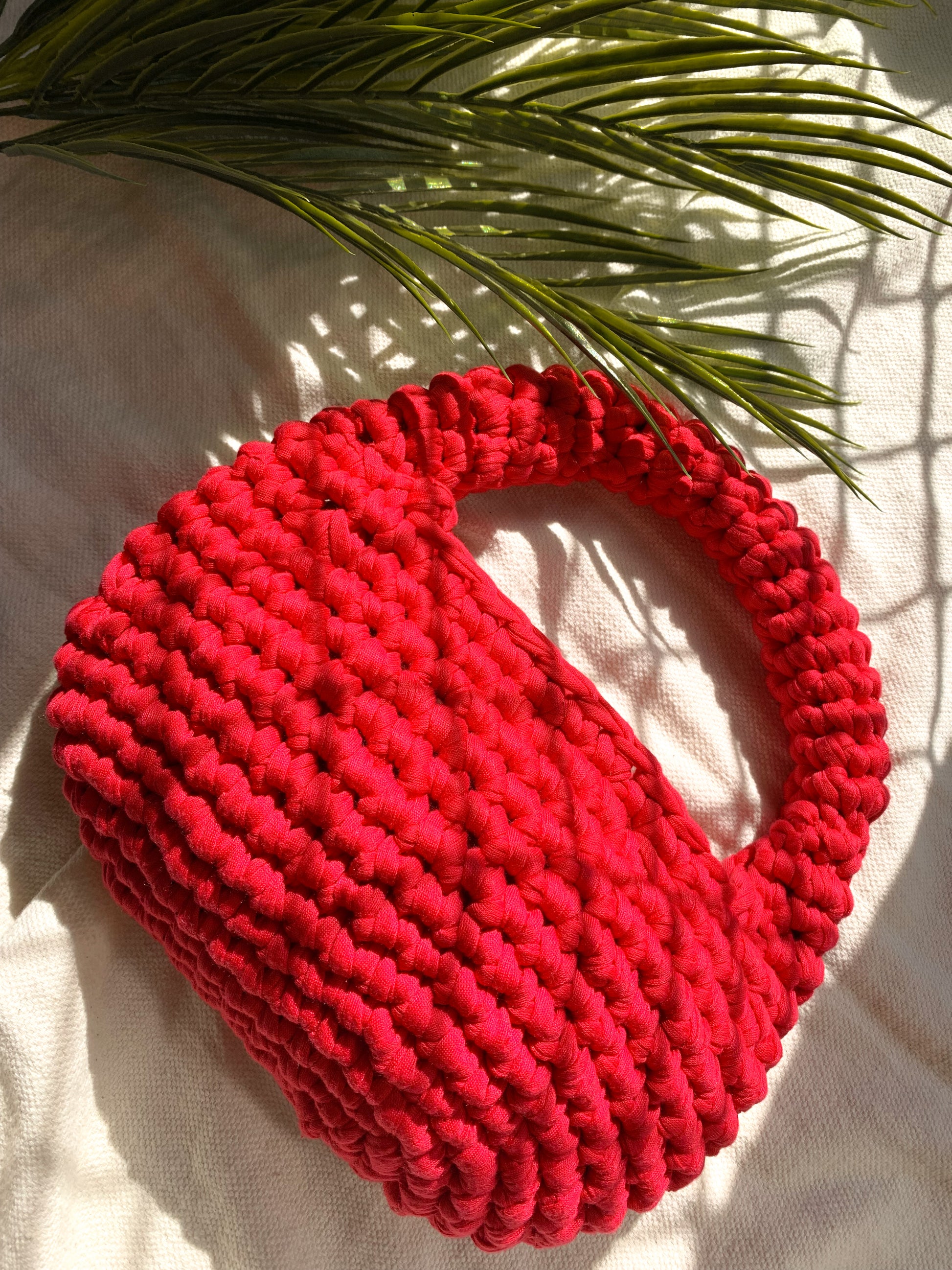 Sustainability meets style with our T-Shirt Yarn Crochet Bag, a handcrafted essential made for conscious fashion lovers. Created from upcycled t-shirt yarn, this bag is not only sturdy and functional but also environmentally friendly.